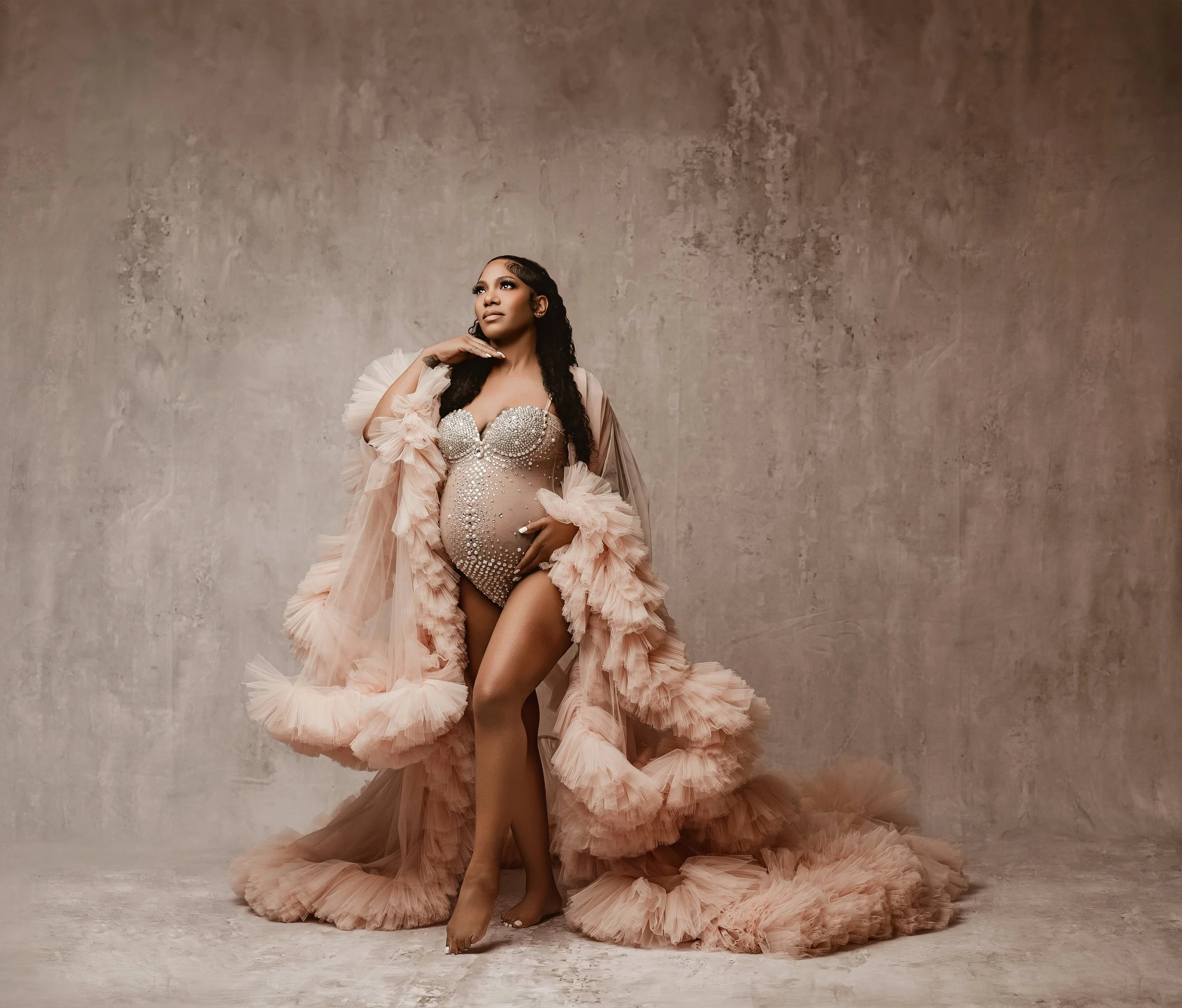 As soon as Natosha walked through the door, it was clear that she was feeling a little apprehensive. However, I could also see her excitement peeking through. We began the session by selecting a beautiful gown from my collection that perfectly accentuated her pregnancy glow.